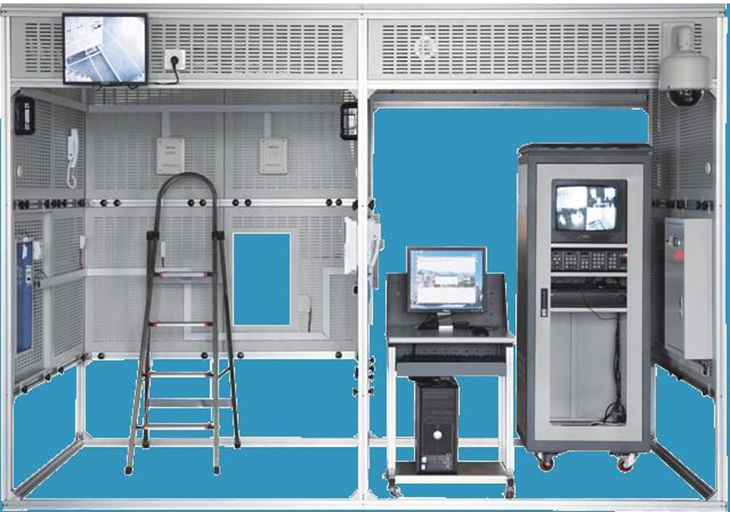 建筑模型由標(biāo)準(zhǔn)規(guī)格的鋁合金工業(yè)型材和網(wǎng)孔式安裝板組成,設(shè)有總電源箱。建筑模型分為智能大樓(小區(qū))和管理中心兩部分,安保區(qū)域設(shè)有單元門和單戶窗,實(shí)現(xiàn)智能小區(qū)對(duì)講門禁系統(tǒng)的設(shè)備安裝、智能大樓室內(nèi)安防系統(tǒng)的設(shè)備安裝等工程訓(xùn)練,實(shí)現(xiàn)單元和單戶可視對(duì)講功能。