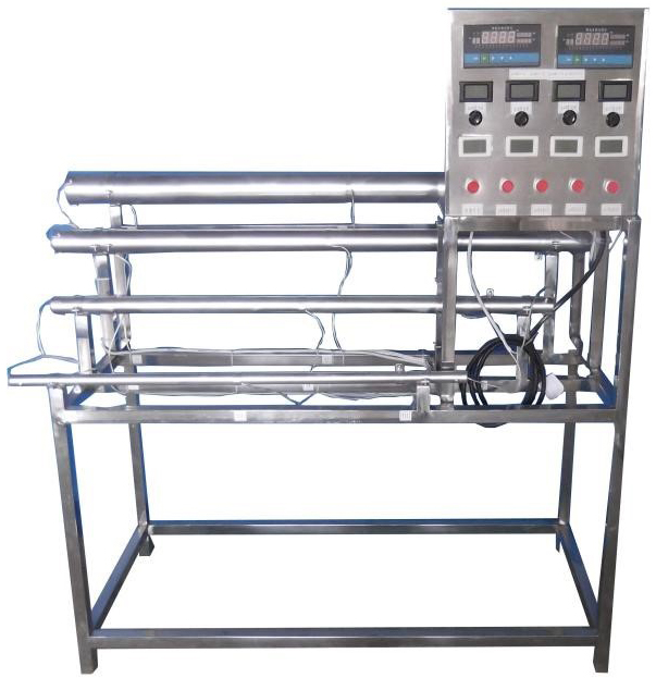 不同長度和直徑的電鍍紫銅管四根,管內(nèi)設(shè)置加熱器,固體調(diào)壓模塊無機(jī)調(diào)節(jié)加熱,測溫傳感器,電功率測試數(shù)顯儀表,萬能信號輸入巡檢儀顯示溫度,各管配有溫度控制儀表,不銹鋼臺(tái)架及控制屏等。