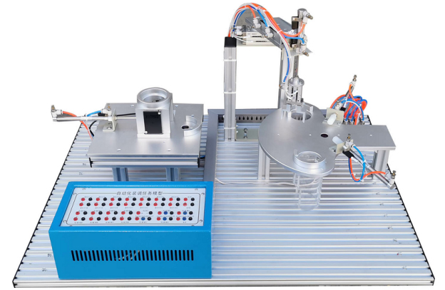 該任務(wù)由氣動機械手、分揀機構(gòu)、上料機構(gòu)、安裝網(wǎng)孔板、電氣接口板、電磁閥組等組成,安裝網(wǎng)孔板由有1.2mm優(yōu)質(zhì)不銹鋼鋼板加工制作,機構(gòu)件由鋁材機加氧化而成,機構(gòu)全部為散件提供,按教學要求由學員自己動手組裝、接線并通過接口板與外部連接調(diào)試。
