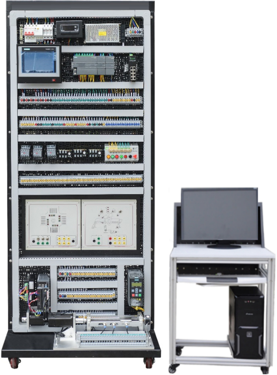 工業自動化實訓平臺,工業自動化實訓裝置,工業自動化實驗臺,工業自動化綜合實訓裝置是最合理、最大化的利用實驗室空間,將實驗部分和實訓功能綜合一起的,工業自動化實訓臺采用掛箱形式、模塊化結構,是實現一室多用、一機多用的復合型裝置。結合當前我國工業自動化應用技術及器件技術的發展,充分考慮實用性、先進性。掛箱包含PLC主機掛箱、變頻器掛箱、觸摸屏掛箱、PLC模擬負載掛箱、直流電機、步進電機實訓裝置、伺服電機實訓裝置、實訓網孔板掛箱及豐富的驗證演示裝置。實驗內容包括PLC的基礎實訓、PLC綜合實訓,變頻器的認識、操作、參數設定及通訊實訓,觸摸屏的認識、操作應用實訓,步時電機應用實訓,伺服電機控制等實訓項目,適合技工學校、職業院校、中職、培訓學校各工種PLC實操、技能鑒定考核。