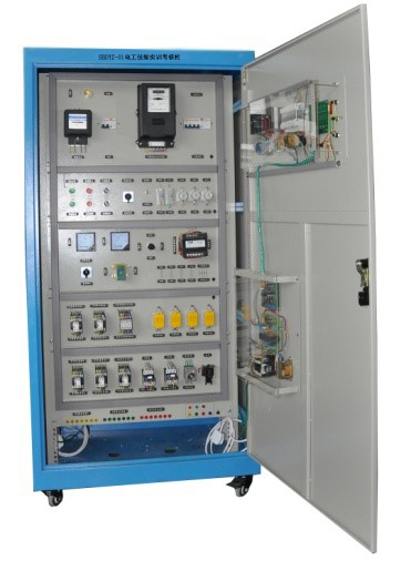 電工技能實訓(xùn)考核裝置是按照勞動和社會保障部頒發(fā)的"工人等級標(biāo)準(zhǔn)"和"職業(yè)技能鑒定"規(guī)范要求而研制的,它是集培訓(xùn)、實操和鑒定為一體的多功能設(shè)備。裝置采用工業(yè)標(biāo)準(zhǔn)配電柜為主體,充分利用柜體的雙面空間,并進行合理布局,配置可靠的元器件?梢酝瓿伞豆S電氣控制》、《電機拖動》及儀表照明電路的實訓(xùn)教學(xué)。同時也滿足維修電工的初、中、高級技能考核內(nèi)容要求。