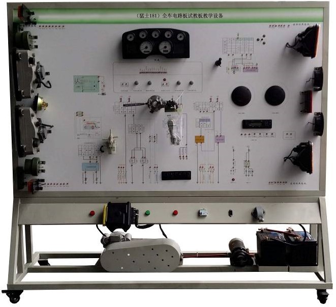 全車電路板試教板教學(xué)設(shè)備采用 全新 新款猛士181柴油機(jī)整車電器實(shí)物為基礎(chǔ),充分展示汽車儀表系統(tǒng)、燈光系統(tǒng)、雨刮系統(tǒng)、喇叭系統(tǒng)、發(fā)動(dòng)機(jī)電器系統(tǒng)、起動(dòng)系統(tǒng)和充電系統(tǒng)等汽車電器各系統(tǒng)的組成結(jié)構(gòu)和工作過程。