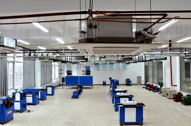 3.組合式空調(diào)機(jī)組、新風(fēng)機(jī)組、風(fēng)機(jī)盤(pán)管、冷卻塔、風(fēng)機(jī)、消聲器、多聯(lián)機(jī)、滾剪機(jī)、咬口機(jī)、卷圓機(jī)、合縫機(jī)等主要設(shè)備,組成一次回風(fēng)式空調(diào)系統(tǒng)、新風(fēng)加風(fēng)機(jī)盤(pán)管空調(diào)系統(tǒng)、排風(fēng)系統(tǒng)、多聯(lián)機(jī)空調(diào)系統(tǒng)等四個(gè)系統(tǒng),可以承擔(dān)組合式空調(diào)機(jī)組安裝、冷卻塔安裝、新風(fēng)機(jī)組安裝、風(fēng)機(jī)盤(pán)管安裝、風(fēng)機(jī)安裝、多聯(lián)機(jī)安裝、風(fēng)口安裝、風(fēng)管制作等8個(gè)實(shí)訓(xùn)項(xiàng)目。