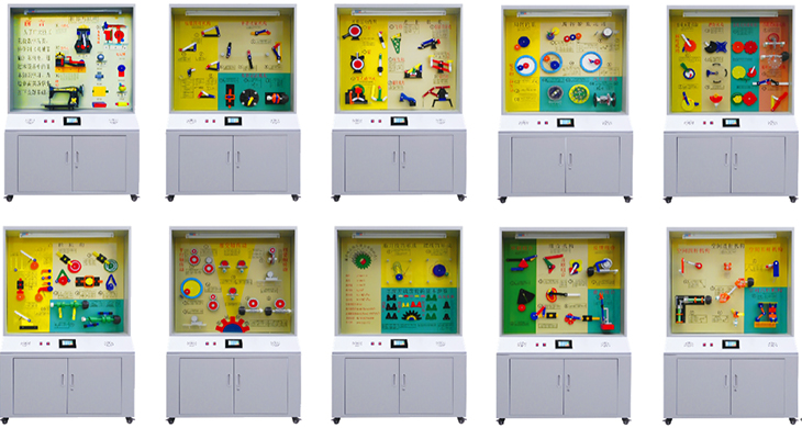 機(jī)械元件陳列柜是根據(jù)大、中專院校、技校、職業(yè)學(xué)校的機(jī)械原理教學(xué)大綱設(shè)計(jì)的電化教學(xué)設(shè)備。本陳列柜具有多功能語(yǔ)音播放控制系統(tǒng),語(yǔ)音解說(shuō)同步演示,采用單獨(dú)驅(qū)動(dòng)由電腦或電子設(shè)備控制運(yùn)轉(zhuǎn)演示,可由遙控控制順序自動(dòng)運(yùn)行講解,又能根據(jù)教材、教學(xué)需要而遙控任意選擇還是單獨(dú)演示。模型材料采用進(jìn)口有機(jī)板制造,板面附有必要的圖表和文字說(shuō)明,演示形象逼真,運(yùn)行可靠,制作工藝美觀,使用本陳列柜可提高教學(xué)效果,節(jié)約學(xué)時(shí)是一套現(xiàn)代化機(jī)械課程教學(xué)應(yīng)用實(shí)驗(yàn)室設(shè)備。