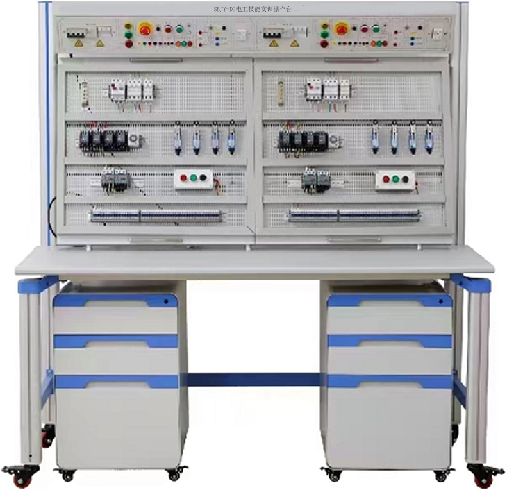 電氣安裝與維修實訓(xùn)考核裝置是根據(jù)工廠電氣安裝和室內(nèi)電氣安裝等維修 電工和電氣安裝工實訓(xùn)鑒定要求開發(fā)的一種通用實訓(xùn)平臺。 適合于各類職業(yè)院校 和技工學(xué)校維修電工、 電氣安裝工、水電工等有電氣實訓(xùn)要求的相關(guān)專業(yè)的作為 公共實訓(xùn)平臺使用。 采用鋼制網(wǎng)孔板和鋼制專用型材組接而成,安裝有自鎖式腳輪,方便移動和使用。裝 置表面噴塑,色彩穩(wěn)重氣派。電氣安裝與維修實訓(xùn)裝置設(shè)計高度以人站在一級人字梯即可方便操作的高度,既安 全又能使使用者感受到施工現(xiàn)場環(huán)境。 橫向、 叢向?qū)挾群线m, 可以模擬現(xiàn)場線路的轉(zhuǎn)向布置。