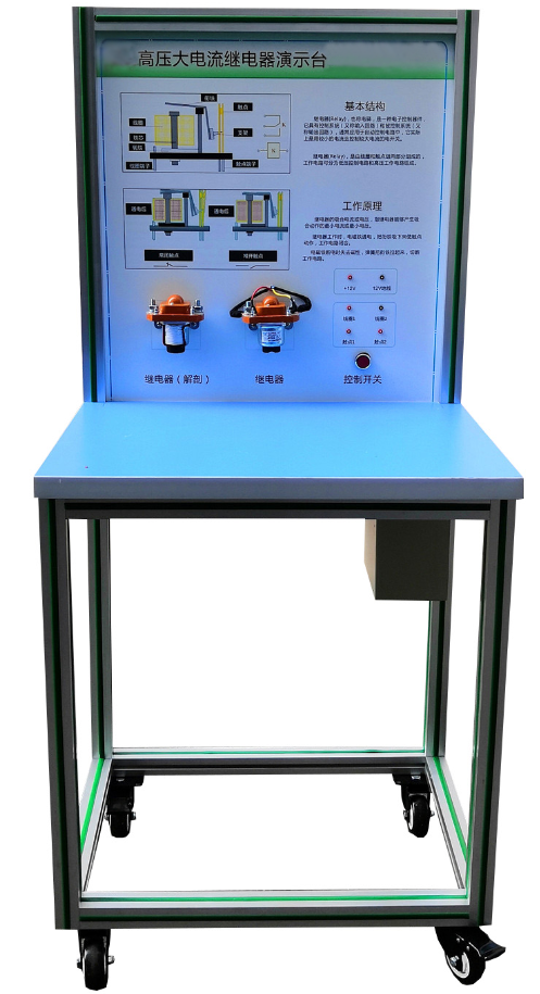 五、基本配置:高壓大電流繼電器EV200AAANA(兩件,其中一件解剖),高壓大電流繼電器EVR200CE(兩件,其中一件解剖),數(shù)字式萬用表,開關(guān)電源,手動開關(guān),可移動實(shí)訓(xùn)臺(帶原理面板)。