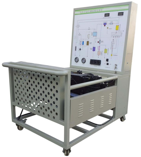 2.由三相電機(jī)做為動(dòng)力源,帶動(dòng)空調(diào)壓縮機(jī)工作。操作空調(diào)控制面板,可真實(shí)演示汽車手動(dòng)空調(diào)系統(tǒng)的工作過(guò)程以及工作原理。