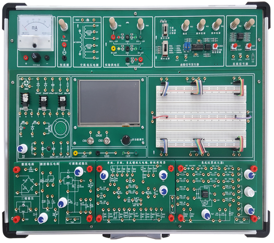 含機(jī)箱、工作電源、常用模擬信號(hào)源、實(shí)驗(yàn)電路區(qū)和分立元件和測(cè)量?jī)x器等 |