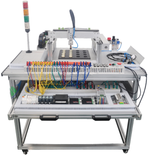 電工電子與PLC實訓(xùn)臺通過上述實訓(xùn)設(shè)備,學(xué)生可在實訓(xùn)室中完成PLC的基本指令編程練習(xí)、三相異步電動機控制練習(xí)、PLC觸摸屏控制設(shè)計練習(xí)以及如流水燈控制、起重機控制、十字路交通燈控制、三層電梯控制等實際設(shè)計項目的練習(xí)。同時,通過外掛電子實訓(xùn)設(shè)備,學(xué)生可以通過實訓(xùn)驗證基爾霍夫定律、疊加原理、戴維南諾頓定理、雙口網(wǎng)絡(luò)、互易定理等電子相關(guān)定理。電工電子電拖PLC綜合實訓(xùn)考核裝置主要承擔(dān)《電工技術(shù)實訓(xùn)》、《PLC及其應(yīng)用》、《模擬電子技術(shù)實訓(xùn)》、《數(shù)字電路實訓(xùn)》、《電力拖動實驗實訓(xùn)》、《電力拖動實驗實訓(xùn)》、《PLC可編程控制器基礎(chǔ)電路實訓(xùn)
